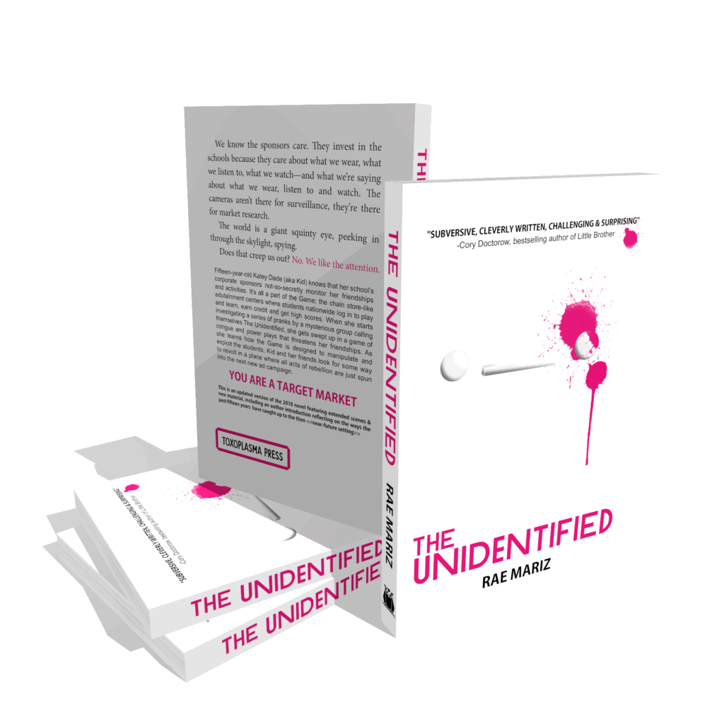 Kid attracts unwanted attention from the sponsors when she begins investigating the series of pranks a group calling themselves The Unidentified have masterminded to protest the power structure of their school. As Kid finds out she doesn’t have rights to her ideas, her privacy, or identity, she and her friends look for a way to revolt in a place where all acts of rebellion are just spun into the next new ad campaign.